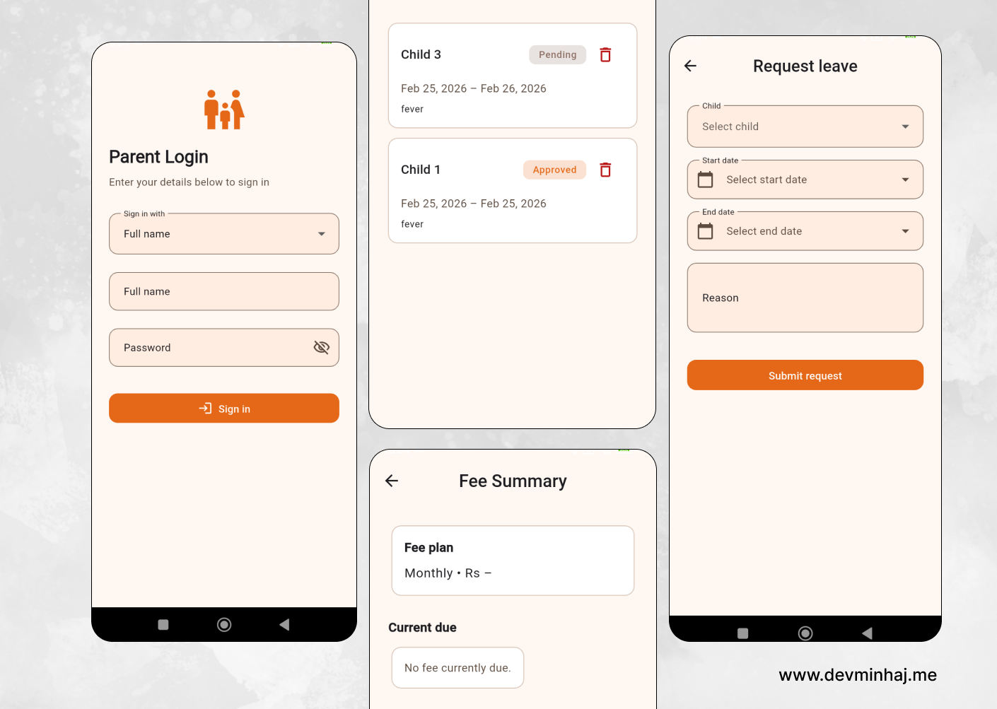Multi-app suite (Admin, Teacher, Parent) for global Madarsa management — profile creation, class/attendance tracking, progress monitoring, fee management.