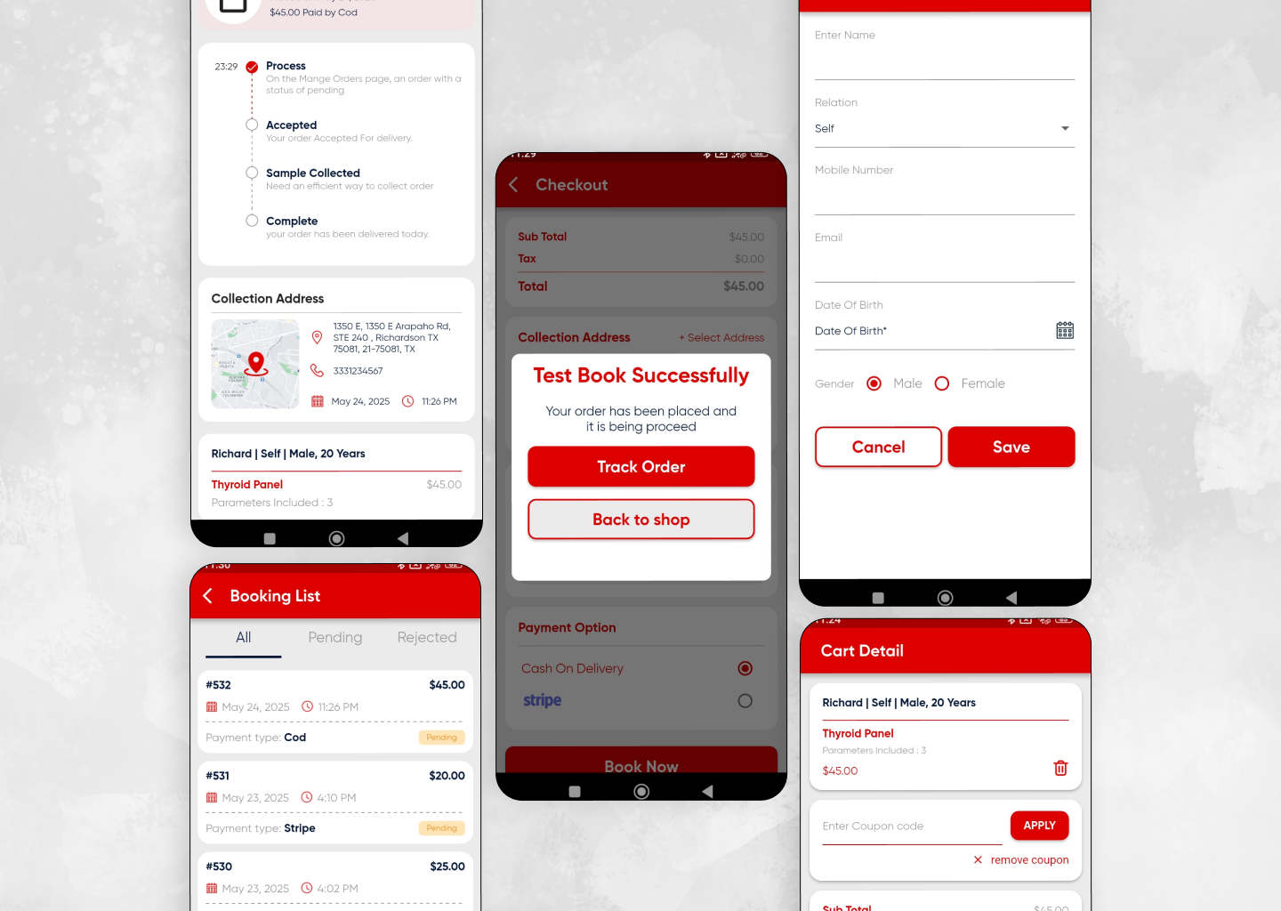 Convenient blood test & health check-up booking app with home sample collection, secure payments, symptom-based suggestions, and digital reports.